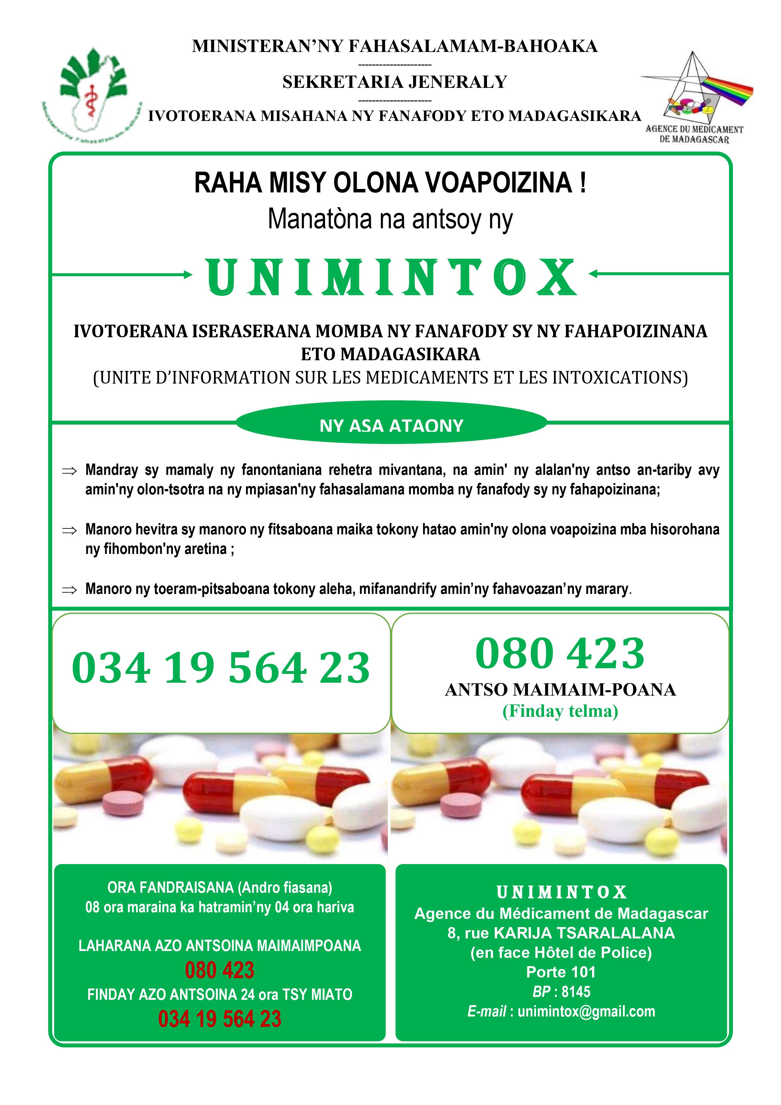 www.amm.mg ou auprès des Points focaux en Pharmacovigilance des formations sanitaires publiques et privées